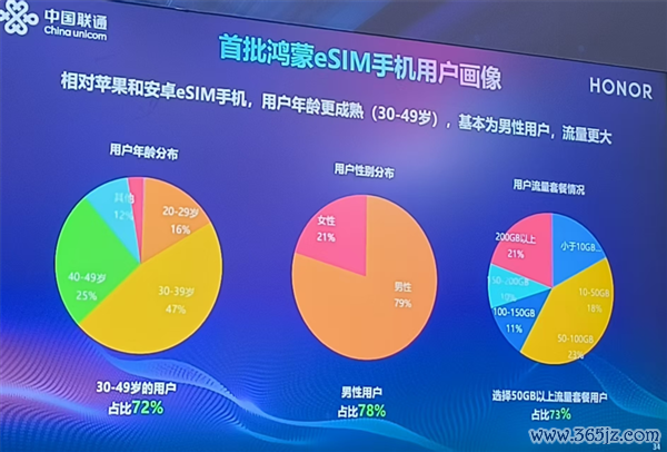 首批鸿蒙eSIM手机用户,选择50GB以上流量套餐用户占比高达73%;首批安卓eSIM手机用户,选择80GB以上流量套餐用户占比为50%;首批苹果eSIM手机用户,选择80GB以上流量套餐用户占比为43%。