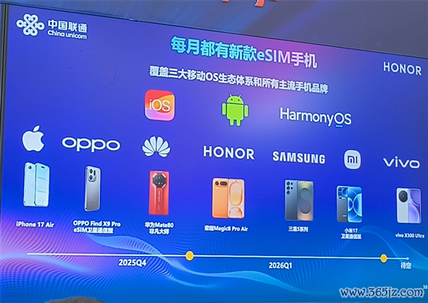 值得注意的是在,中国联通在现场公布的路线图显示,Q1还会有三星S系列、17卫星通信版作为eSIM新机上市。