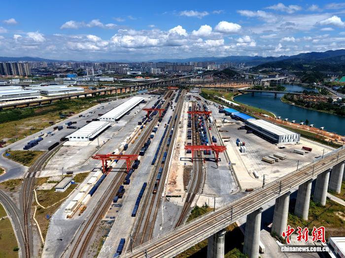 湖南怀化国际陆港,已开通196条国际国内线路。 张卓 摄